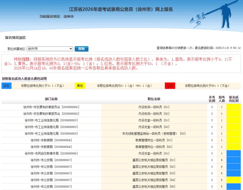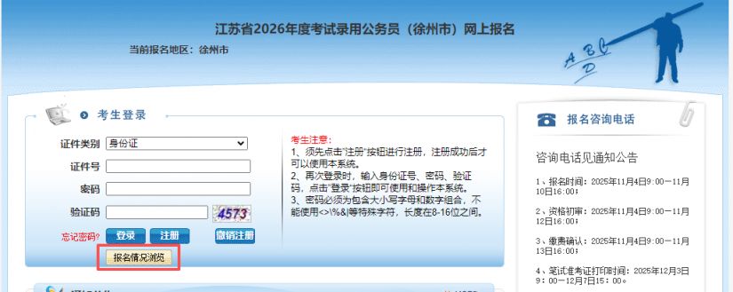 【导语】:徐州市2026年度考试录用公务员报名时间为2025年11月4日9∶00至11月10日16∶00,报名人数查询流程详见正文。