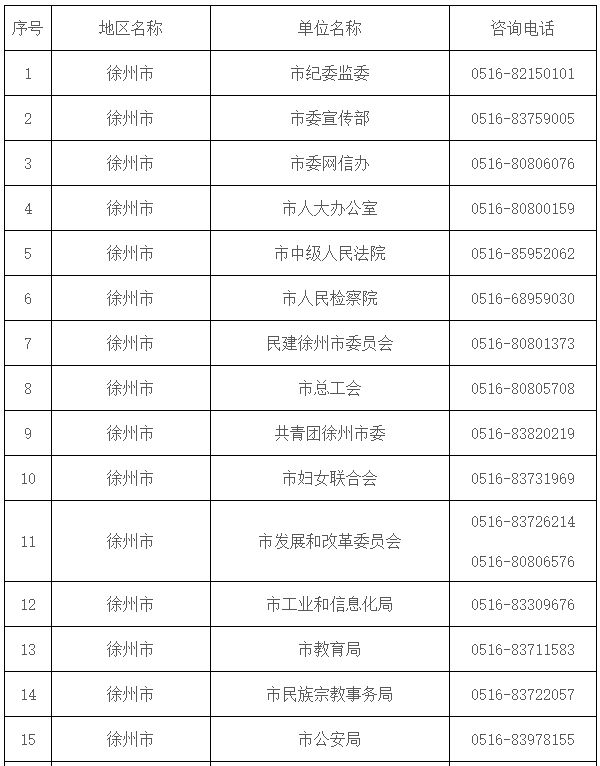 徐州市2026年度考试录用公务员招录单位咨询电话